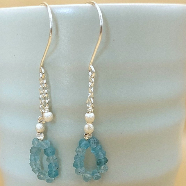 Teardrop sterling silver beaded drop earrings with apatite gemstone beads